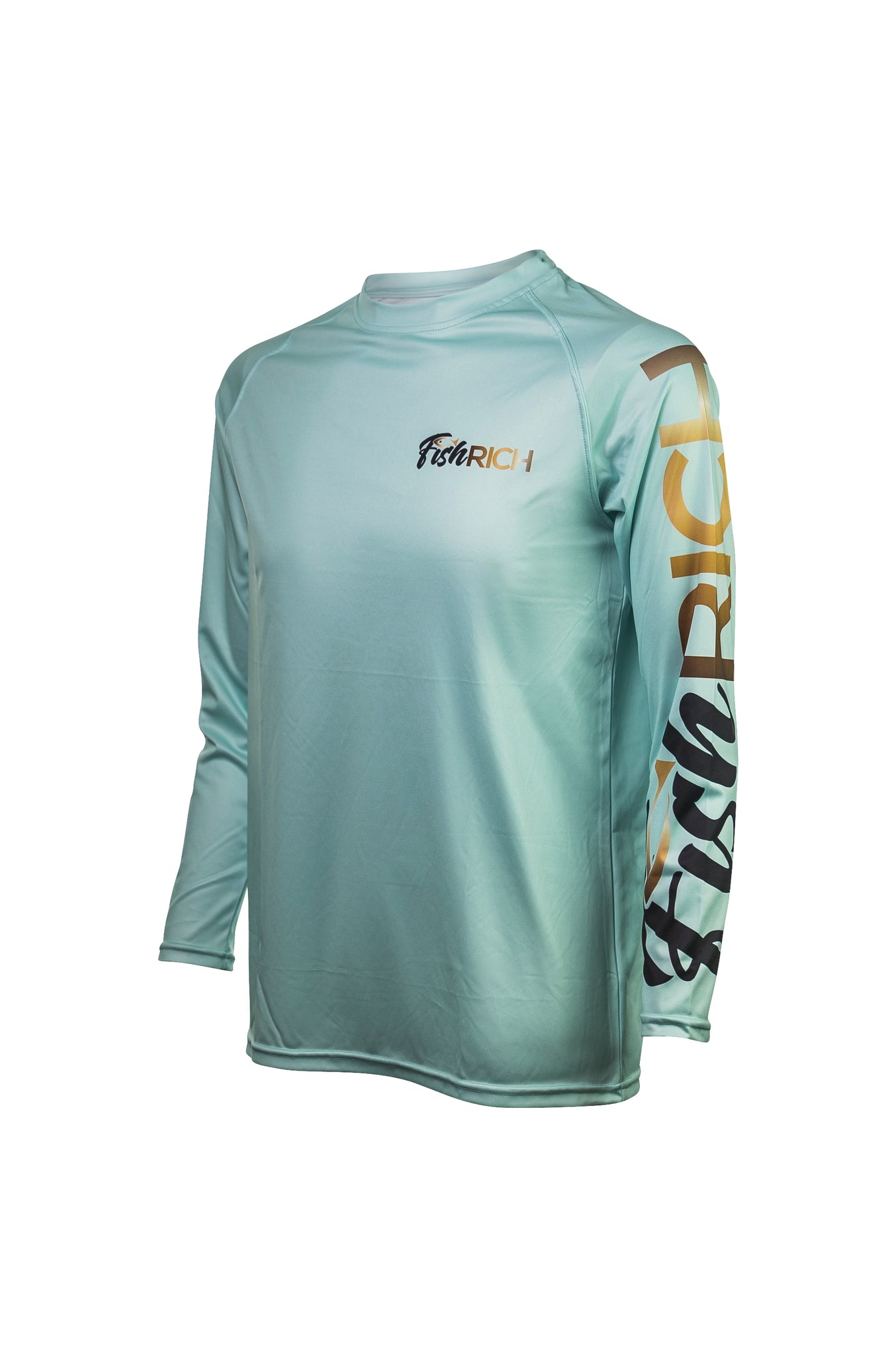 FishRICH Logo, Youth Long Sleeve Fishing Shirt, UPF 50 + Light Aquamarine, (100% Poly-160 GSM)